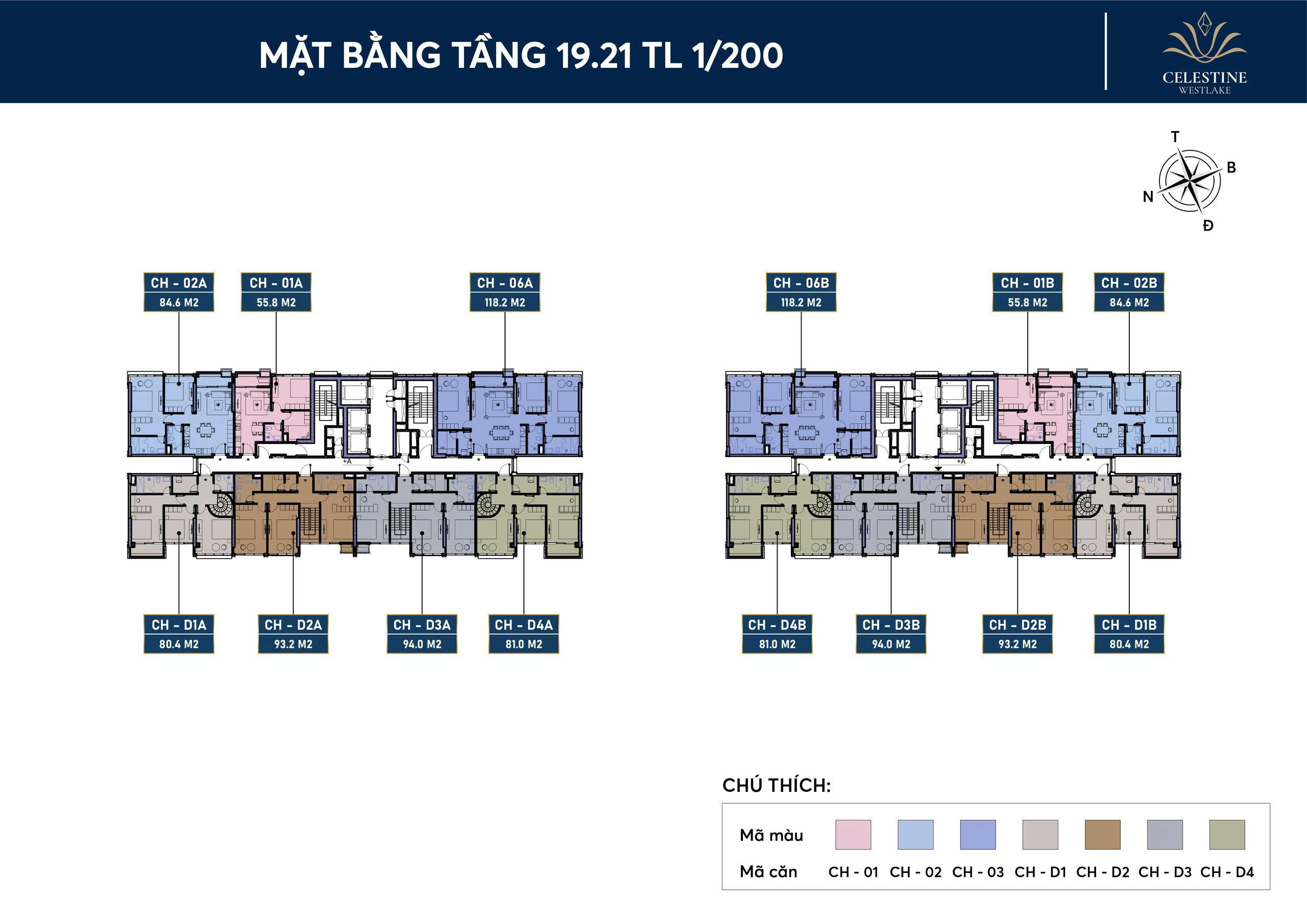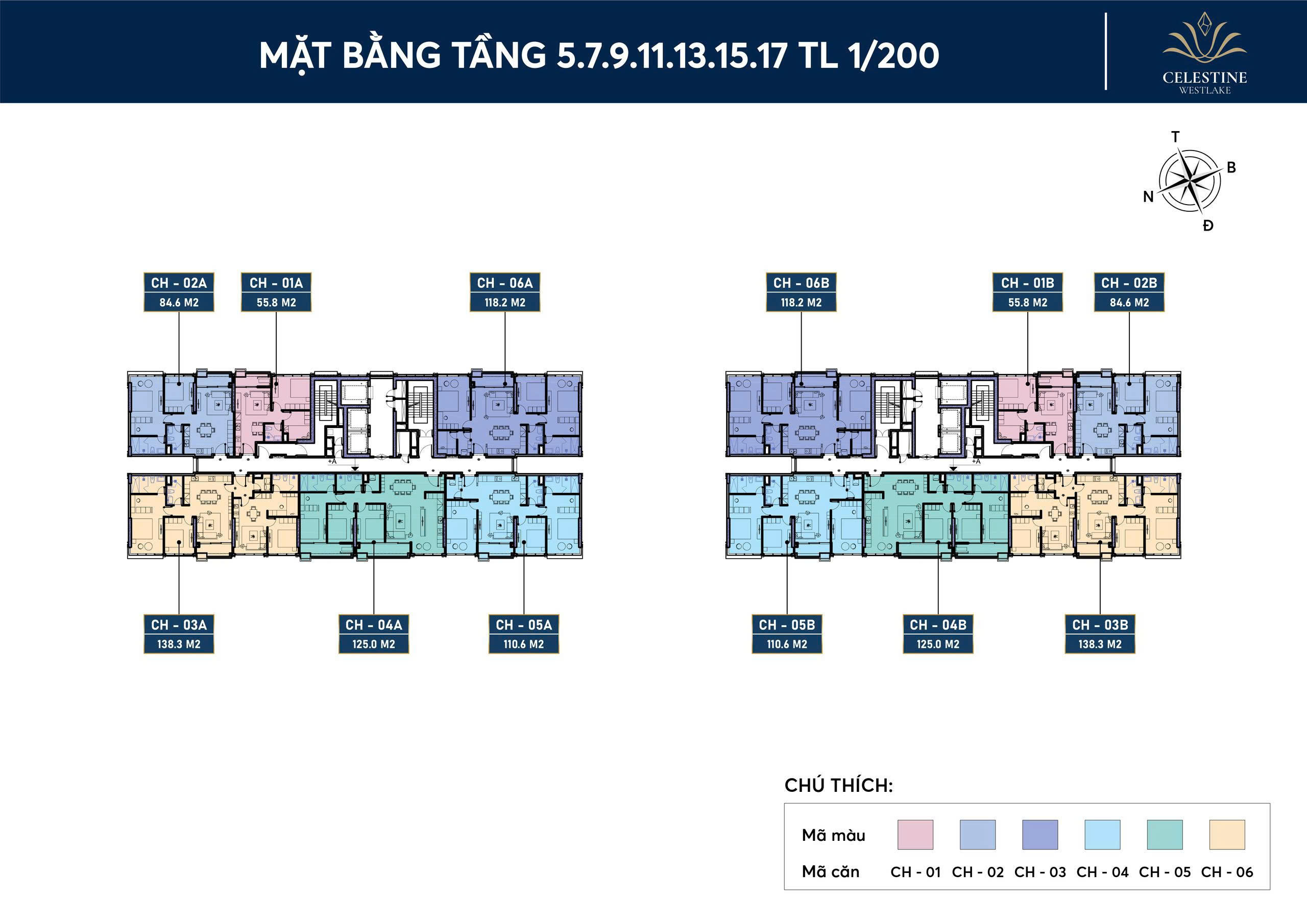 - Tổng số căn: 216 căn hộ hạng sang – 108 căn/tòa – 6 căn/sàn